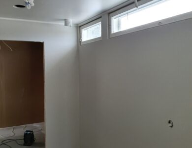 Ensimmäisten valmistelujen suorittamisen jälkeen aloitamme kittaustyöt. Mikäli kyseessä on ovat kipsilevyillä päällystetyt seinät, kittaamme ja sitten silotamme tasaiseksi sekä levyjen liitossaumat, ristikkäissaumat että myös ruuvien reiät.